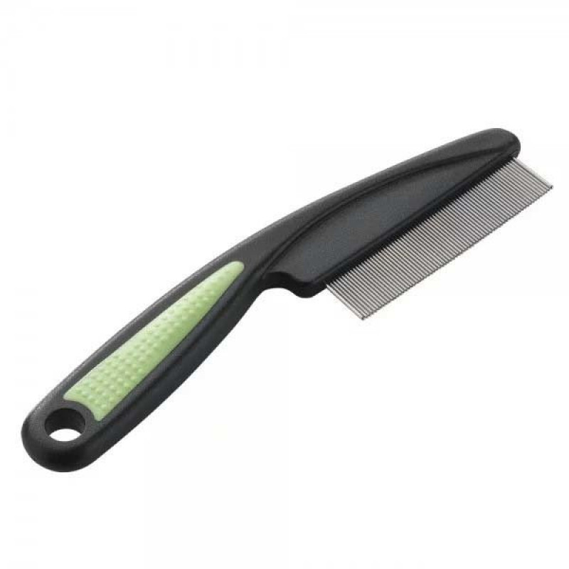 GRO 5878, güvenli tutuş için plastik saplı bir pire tarağıdır ve kısa ve orta tüylü kedi ve köpekler için idealdir.