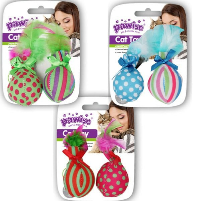 Pawise 2 Adet Tüylü Top Renkli | Kedi Top Oyuncak