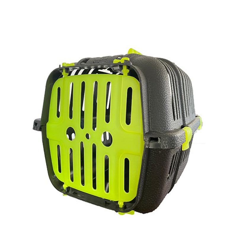 Orijinal yuvarlak şekli kediler ve küçük köpekler için idealdir, hayvanın görünürlüğünü sağlamak ve içeride doğru hava dolaşımını sağlamak için şeffaf bir kapıya sahiptir.
