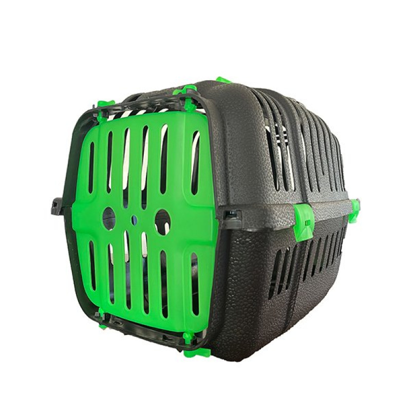Orijinal yuvarlak şekli kediler ve küçük köpekler için idealdir, hayvanın görünürlüğünü sağlamak ve içeride doğru hava dolaşımını sağlamak için şeffaf bir kapıya sahiptir.