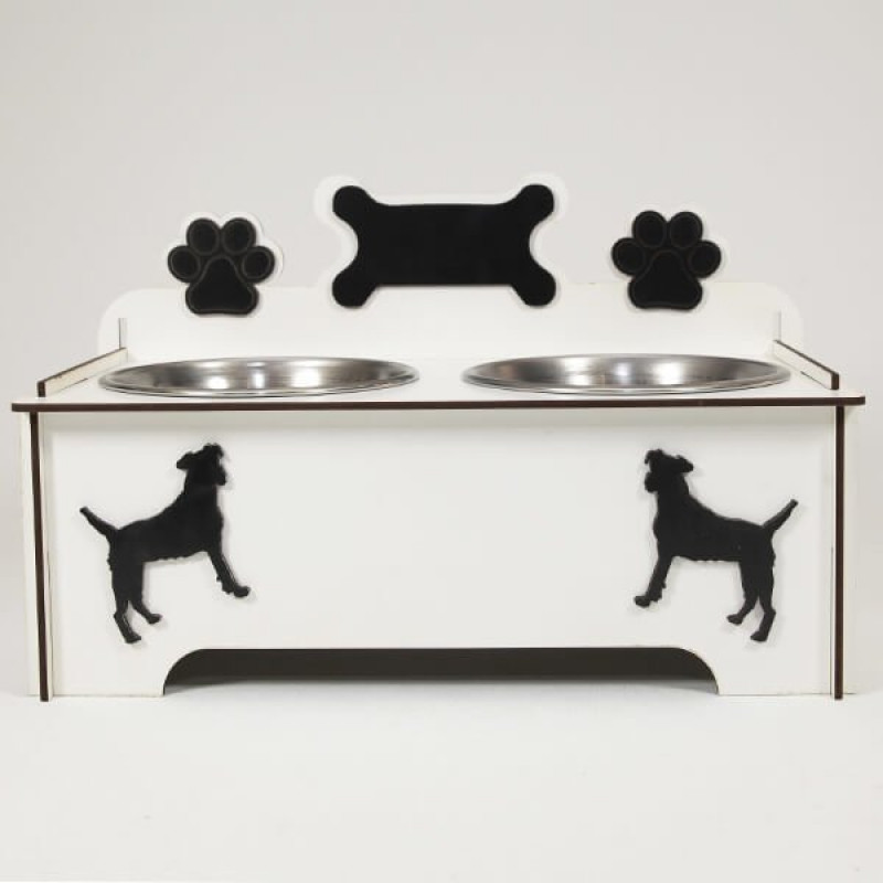 Petzz Ahşap Köpek Mama ve Su Kabı Seti Beyaz 2x300 Ml 9 Cm