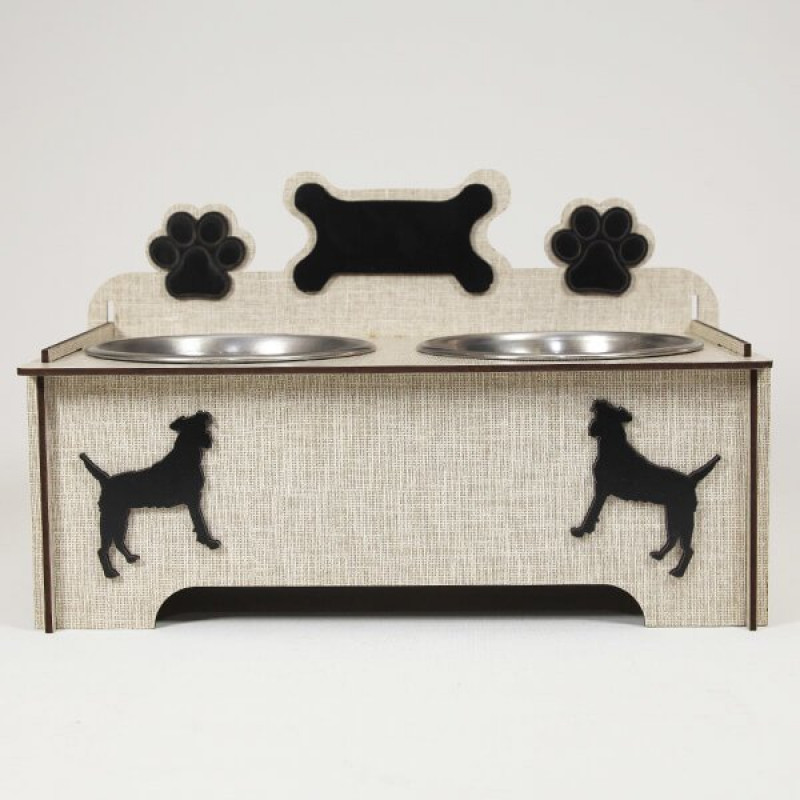 Petzz Ahşap Köpek Mama ve Su Kabı Seti Gri 2x300 Ml 9 Cm