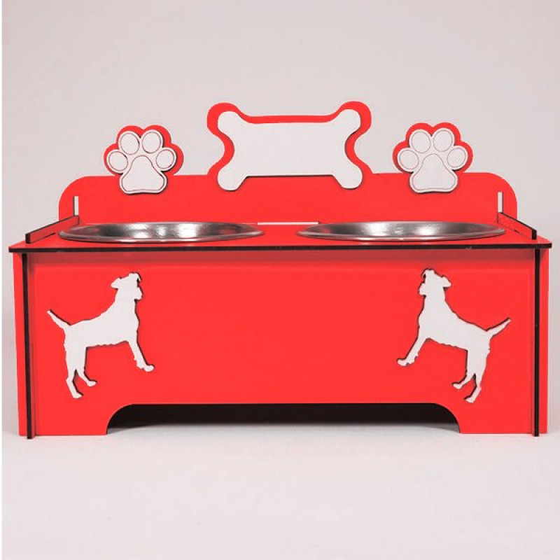 Petzz Ahşap Köpek Mama ve Su Kabı Seti Kırmızı 2x300 Ml 9 Cm