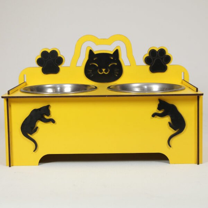 Petzz 9 Cm Ahşap Mama ve Su Kabı Seti Sarı 2x300 Ml | İkili Mama Ve Su Kabı