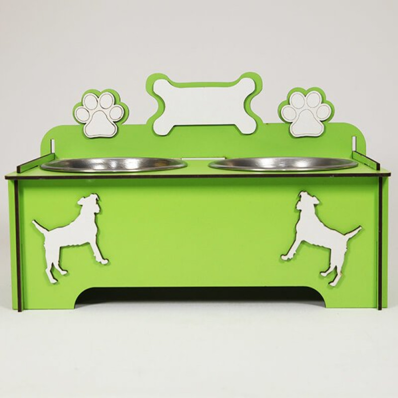 Petzz Ahşap Köpek Mama ve Su Kabı Seti Yeşil 2x300 Ml 9 Cm