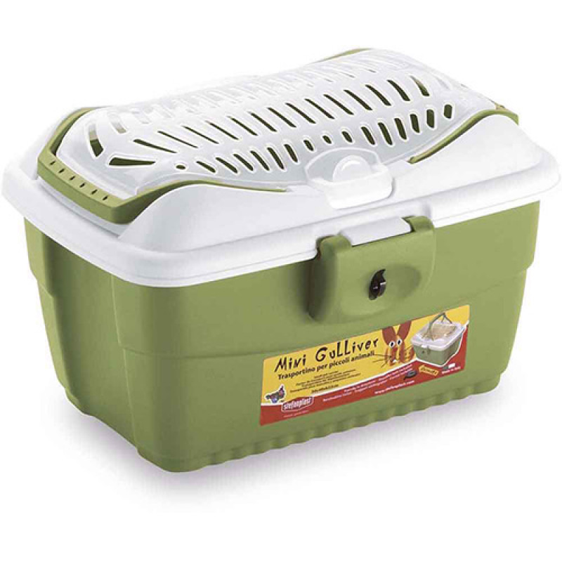 Stefanplast Mini Gullıver YeşilHamster, guinea pig ve tavşan gibi küçük petler için 40x 30x h24 cm ebatlarında üstten açılabilen, hava almasını sağlayan, delikli üst kapak sayesinde rahatlıkla hava alabilir. Sert plastik malzemeden taşıma çantasıdır. İstenildiğinde demonte olabilir. |