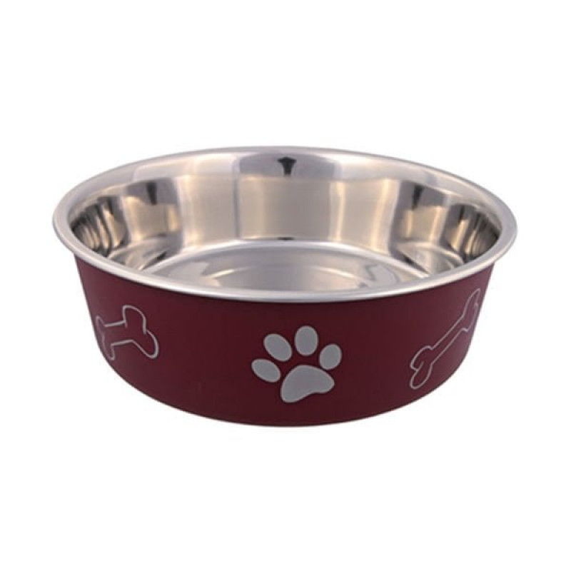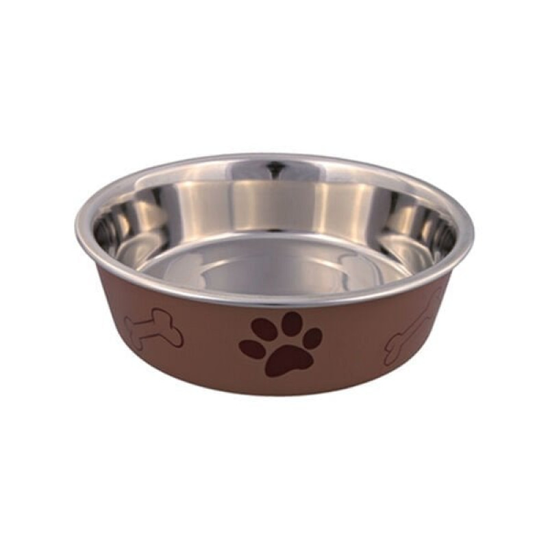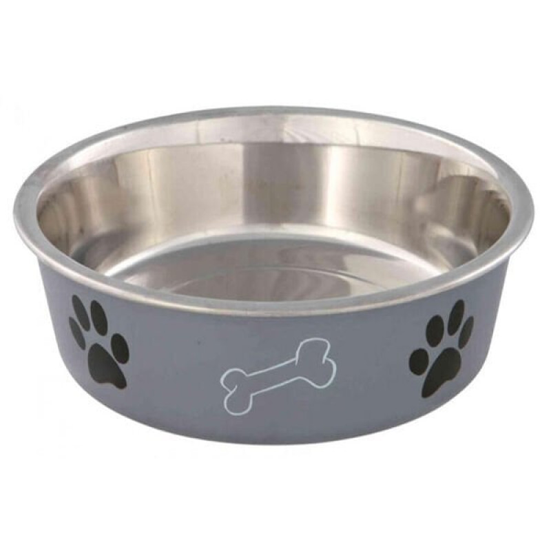 Paslanmaz çelik dışı renkli plastik kaplı mama ve su kabıdır. Altındaki kauçuk sayesinde kullanım sırasında kaymaz.