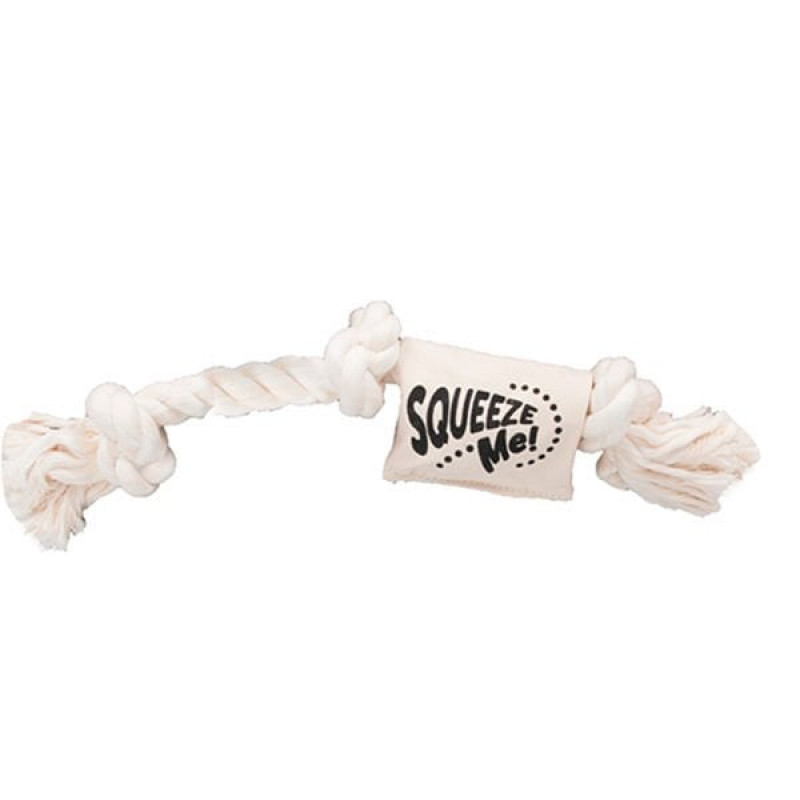 Düğümlü bir ipten ibaret basit bir oyuncak sanmayın! İpin üzerindeki peluş içinde bulunan düdük sayesinde ilgi çekici ve heyecan verici bir oyuncaktır. Pamuktan imal ip sayesinde diş temizleyici görevi görür. Beyaz renkte. 22 cm uzunluk.
