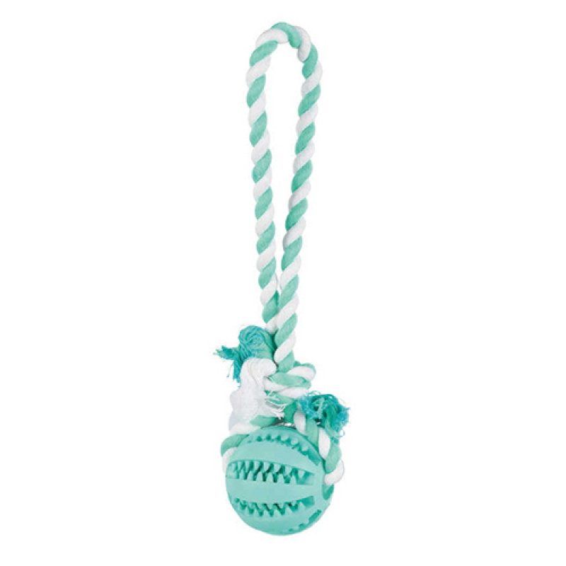 Trixie Köpek Dental Toplu Oyun İpiTop çapı 7 cm olan diş etlerine masaj yapan 24 cm uzunluğunda tutamaçlı ipli top.