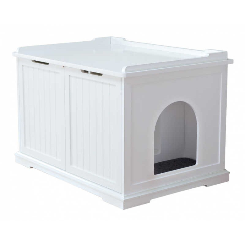 Kediseverlerin herzaman ihtiyacı olan ve aradığı bir tasarımdır. Bu kedi mobilyasının başlıca iki kullanım alanı vardır. Bu şık MDFden üretilmiş, üzeri mat vernikli beyaz renk olan kedi mobilyasını kedinizin ihtiyaç duyduğu, saklanmak istediğinde sadece ona ait olacak bir sığınma, saklanma mobilyası, üzerini sehpa olarak kullanabileceğiniz gibi, banyo veya kış bahçenizde kedi tuvaletinin konulacağı bir mobilya olarakta kullanabilirsiniz. Tasarımı sayesinde kedinizin kumu eşelemesi sonucu dışarı kum sıçramasını tamamen önler. Arka tarafındaki hava sirkülasyon delikleri sayesinde iyi bir havalandırma sağlar. Ön tarafındaki açılabilir büyük kapısı sayesinde temizlemesi kolay ve hızlıdır. Açılan ön kapı mıknatıslıdır. Kedi tuvalet kabının arka tarafında kalan bölüme kedinizin kumunu, küreğini vb koyabilirsiniz. İstenrise tuvalet kabı koymak yerine rahat, büyük ve yumuşak bir kedi yatağı konularak kediler için uyuma, saklanma alanı olarakta kullanılabilir. Kedi tuvalet kabı mobilyasını birleştiriken, giriş kapısı kısa kenar yerine sağ veya solada konabilir.Giriş bölümüne 4030 ve 4031 kodlu Trixie tuvalet kabı paspası kullanılabilir. Üst bölüm 90Kg ye kadar yük taşıyabilir.