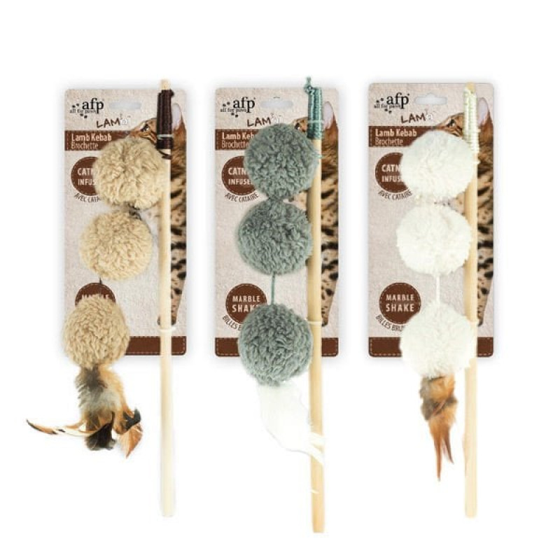 AFP markasının Lambswool Şiş Kebap Kedi Olta Oyuncağı, kedileriniz için eğlenceli ve uyarıcı bir oyuncaktır.Oyuncak şiş üzerinde bulunan renkli ve kıvrak püsküller, kedinizin dikkatini çekecek ve oynarken eğlenmesini sağlayacaktır.