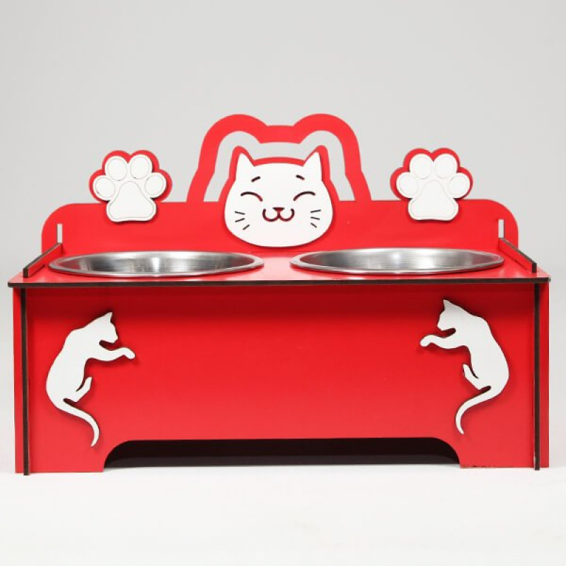 Petzz Ahşap Kedi Mama ve Su Kabı Seti Kırmızı 2x300 Ml 9 Cm