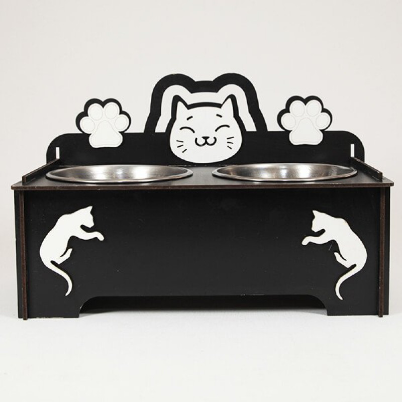 Petzz Ahşap Kedi Mama ve Su Kabı Seti Siyah 2x300 Ml 9 Cm