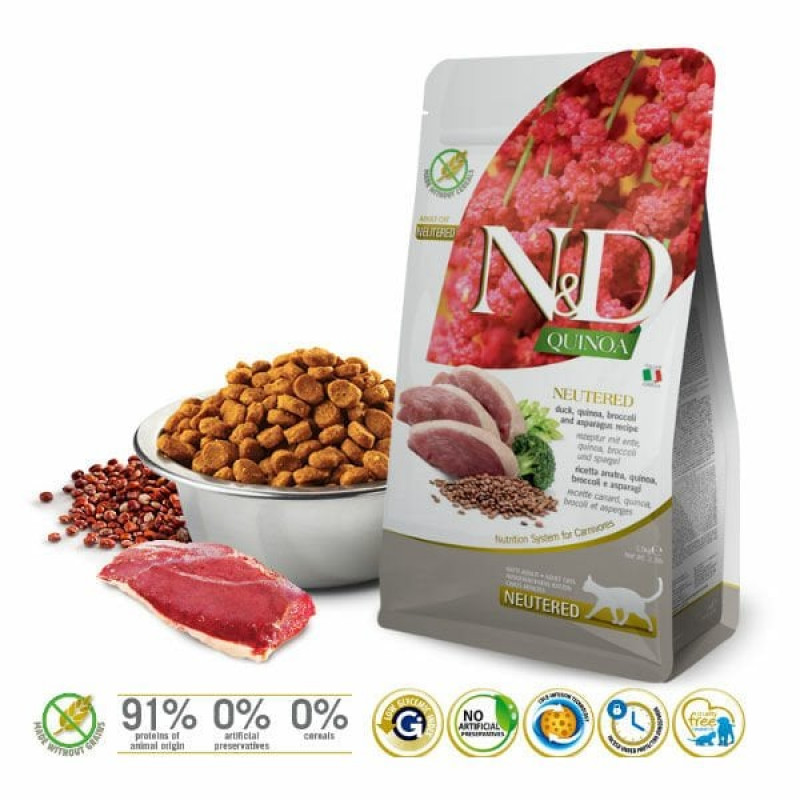 N&D Quinoa 1,5 Kg Neutered Ördek Kinoa Brokoli ve Kuşkonmaz | Kısırlaştırılmış Kedi Maması