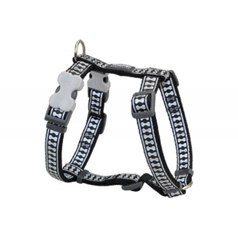 Red Dingo 15mm Reflektörlü Kemik Desenli Siyah Göğüs Tasması | Köpek Göğüs Tasması