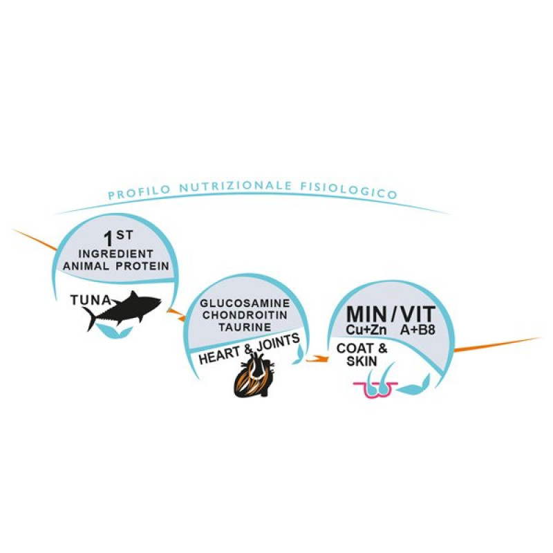 Unica Classe Adult Sensitive Ton Balıklı, eklemler için glukozamin, kondroitin ve taurin, cilt için ise bakır, çinko, A vitamini ve biotin içerir.