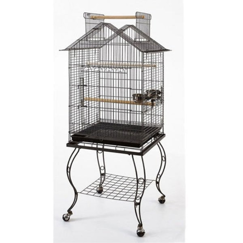 Tekerlekli sehpası, geniş ölçüleri ile büyük papağanlar için uygun boyutlarda. Kafesin çatısı açılabilir. Çelik yem ve su kabı.