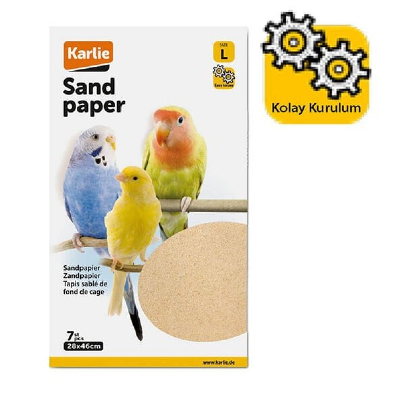 Kuf kafesleri tabanlarına sermek için üretilmiş bu zımparalı kuş kağıdı, kuş kumu için pratik bir alternatiftir. Bir kat zımpara kağıdı kafes tabanına yerleştirilir ve kafes tabanını daima temiz ve hijyenik tutmak için düzenli olarak yenilenir. Ayrıca, zımpara değerli mineraller, kalsiyum ve öğütülmüş kireç taşı içerir. Bu bileşenler kuşların refahını arttırır ve sindirimi kolaylaştırır. ZImparalı yapısı sayesinde kuşun gagası ve tırnaklarının aşırı uzamasının önüne geçilir. Kanaryalar, muhabbet kuşları ve diğer tüm kafes kuşları için idealdir.