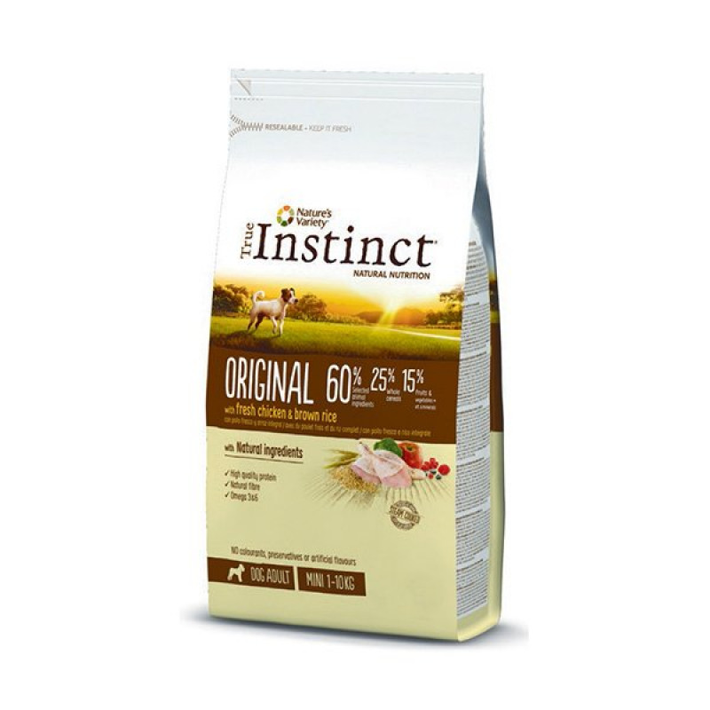 True Instinct ™ ORIGINAL, eksiksiz ve dengeli bir diyet için eşsiz bir doğal bileşen kombinasyonu kullanılarak geliştirilmiştir. İlk bileşen, en iyi sağlığın korunmasına yardımcı olmak için tam tahıllı tahılların (kahverengi pirinç, arpa ve yulaf) ve meyve ve sebzelerin belirli bir karışımı ile birleştirilen taze tavuktur. Mısır, buğday ve soya içermez.