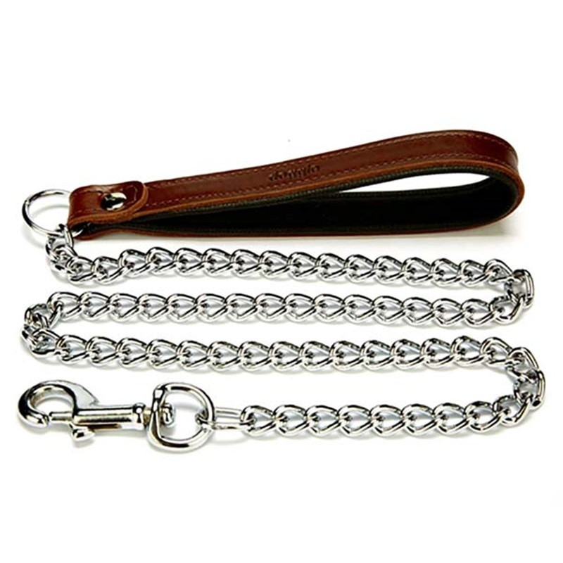 Doggie 3,5x110 Cm Konfor Deri Saplı Zincirli Gezdirme Kahverengi | Köpek Gezdirme Tasması